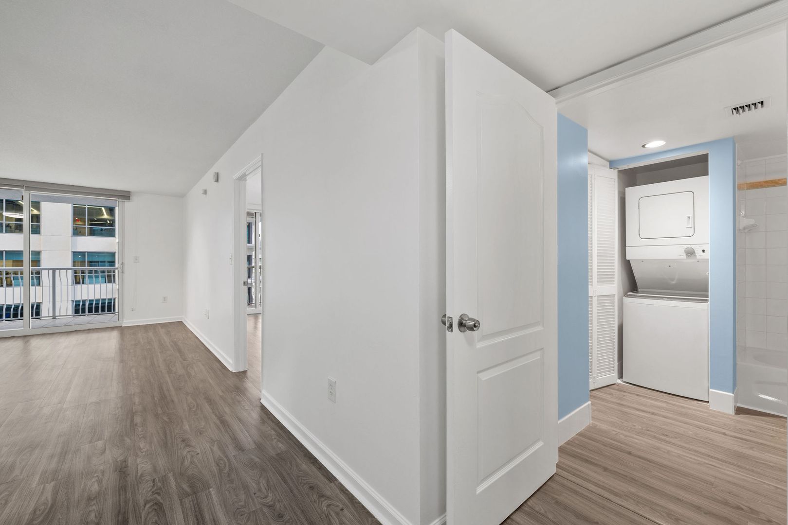 Brickell Bay Club. This 32nd floor unit offers a large balcony with views of the city and Biscayne Bay. The unit features wood laminate floors, granite kitchen counters and in unit laundry. Building amenities include a gym, jacuzzi and two swimming pools. Brickell Bay Club is walking distance to the Brickell Avenue financial district, shops, restaurants, the metro rail and metro mover and a short drive or metro mover ride to the Adrianne Arsht Center. All your needs are met here, live, work, play